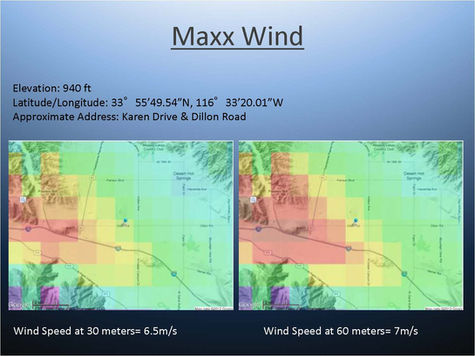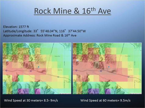In order to assess potential for several areas in Desert Hot Spring, CA., I used AWS Wind Navigator and Google Earth software. To verify the accuracy of the data and understand potential for substation connection, I also coordinated with contacts at Southern California Edison.
